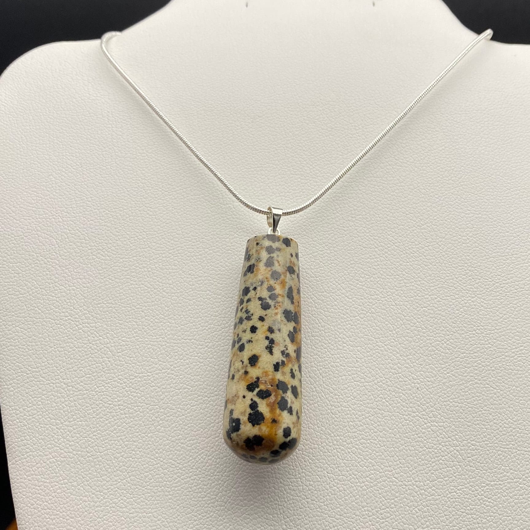 This necklace and pendant are made of high-quality materials. The Dalmatian Jasper is natural and untreated and the chain and pendant are made of solid 925 sterling silver.