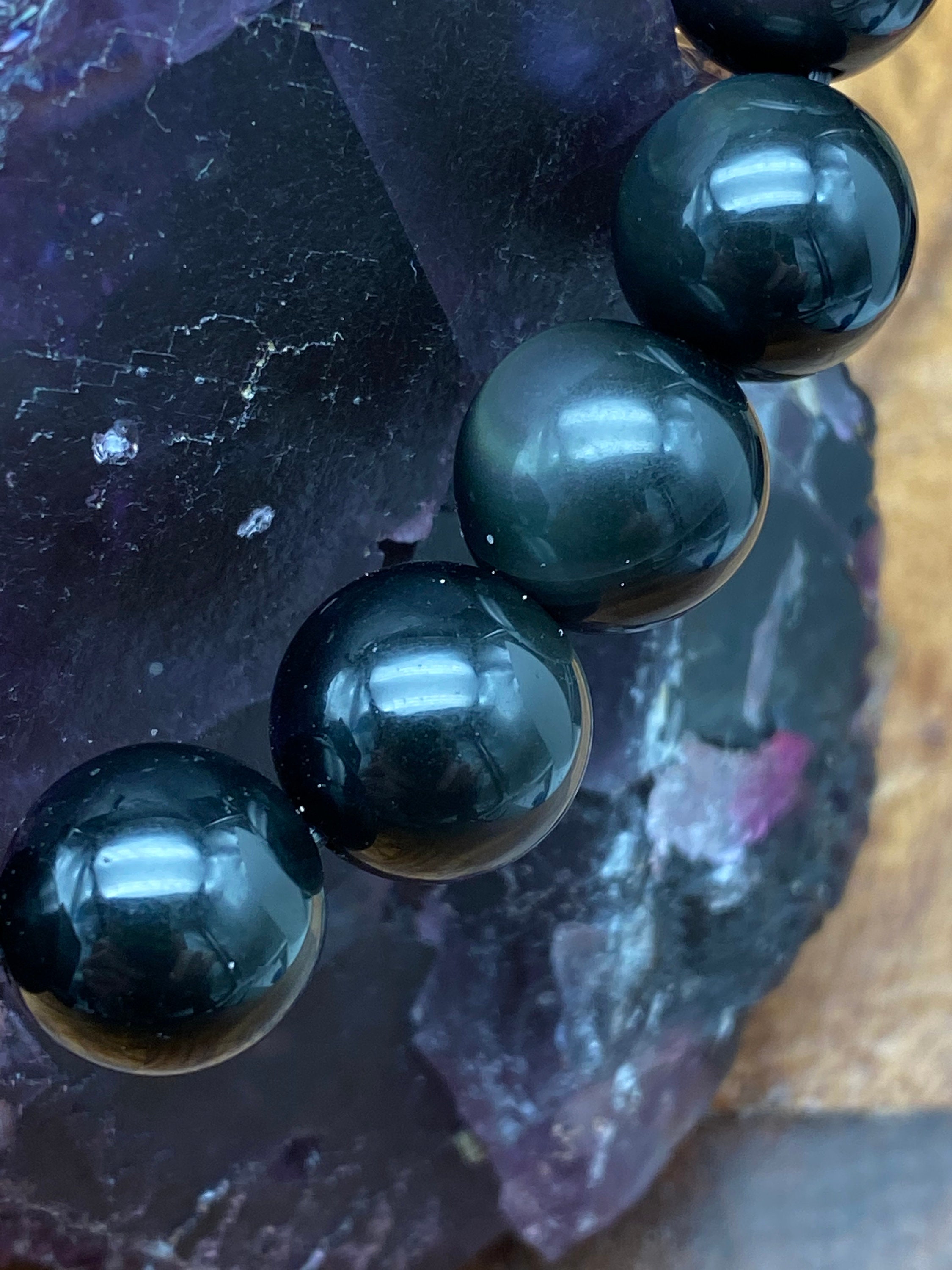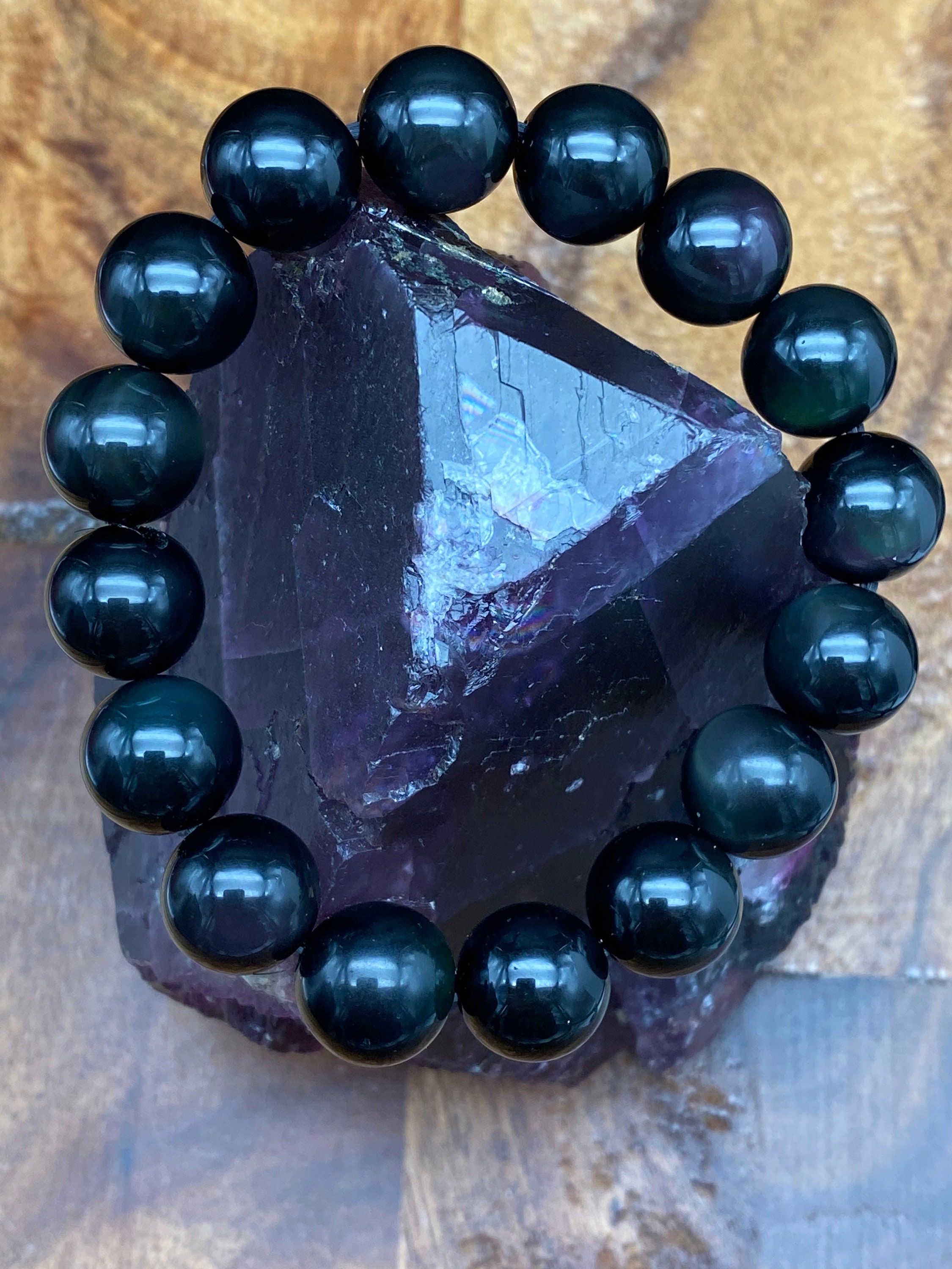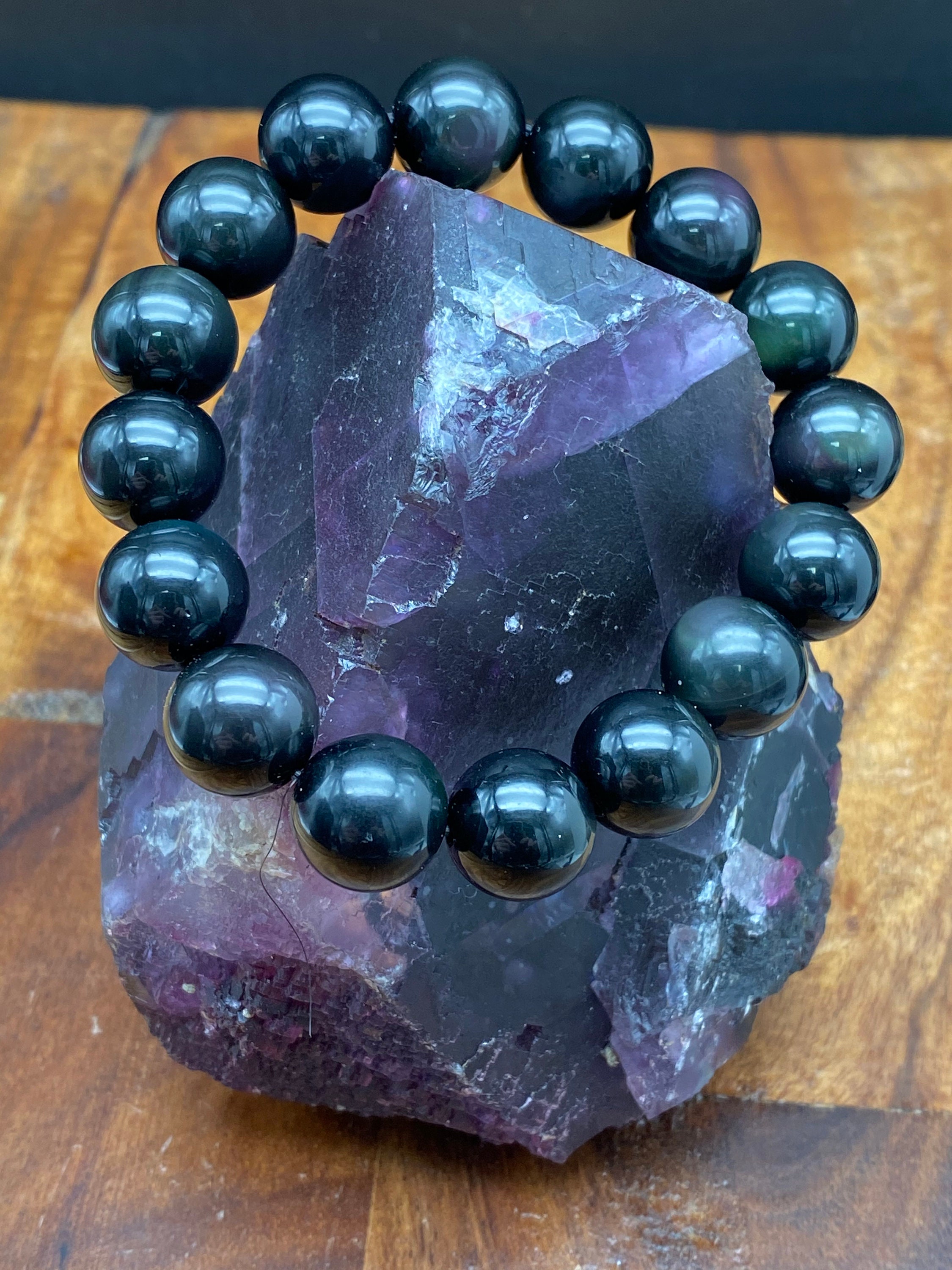 This bracelet is made of high-quality materials. The Rainbow Obsidian is natural and untreated.