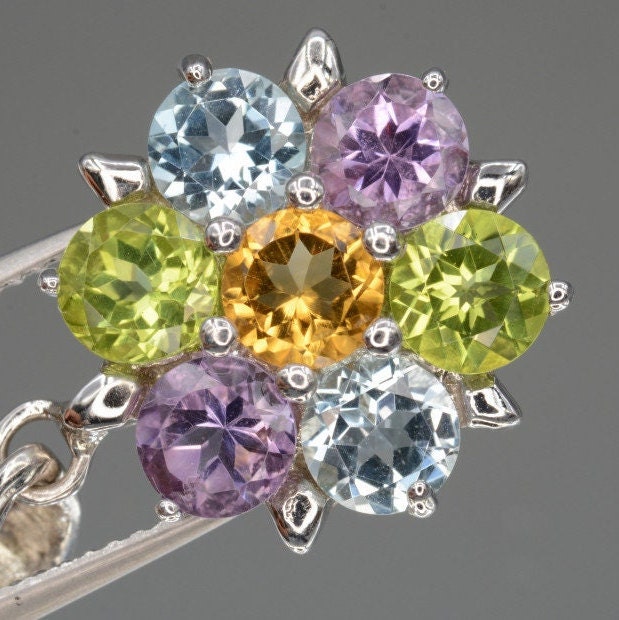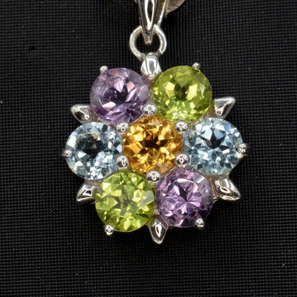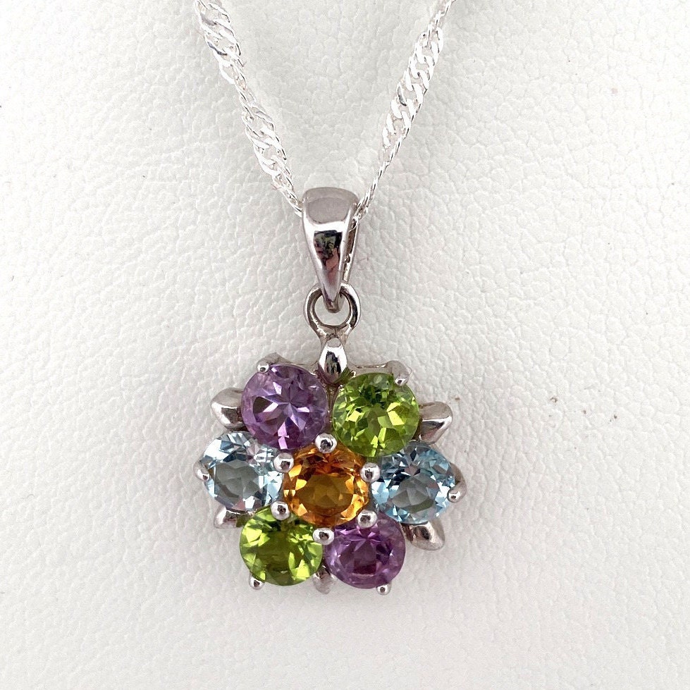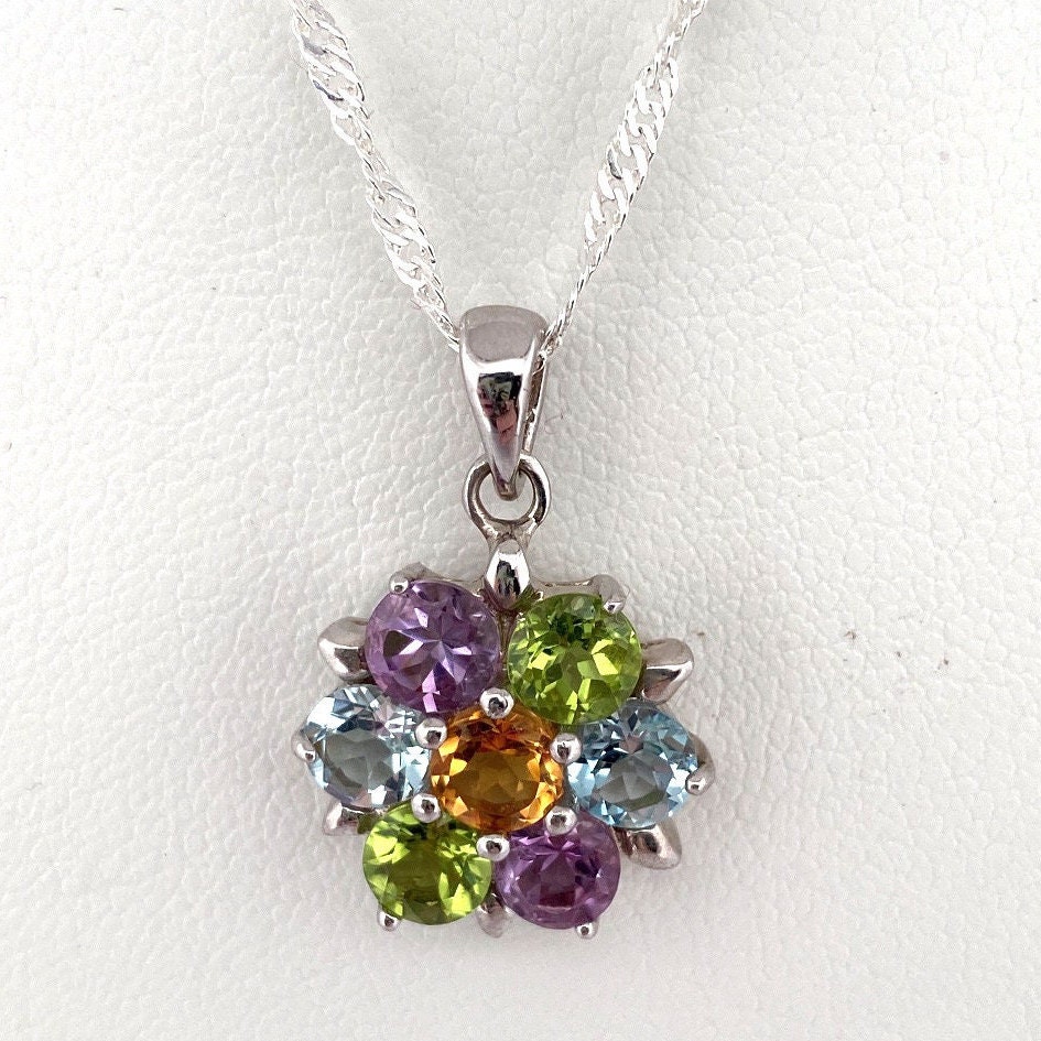 This necklace and pendant are made of high-quality materials. The Peridot, Amethyst, Citrine and Blue Topaz are natural and untreated (except the topaz is irradiated as per industry standard to get the beautiful blue color) and the chain and pendant are made of solid 925 sterling silver.