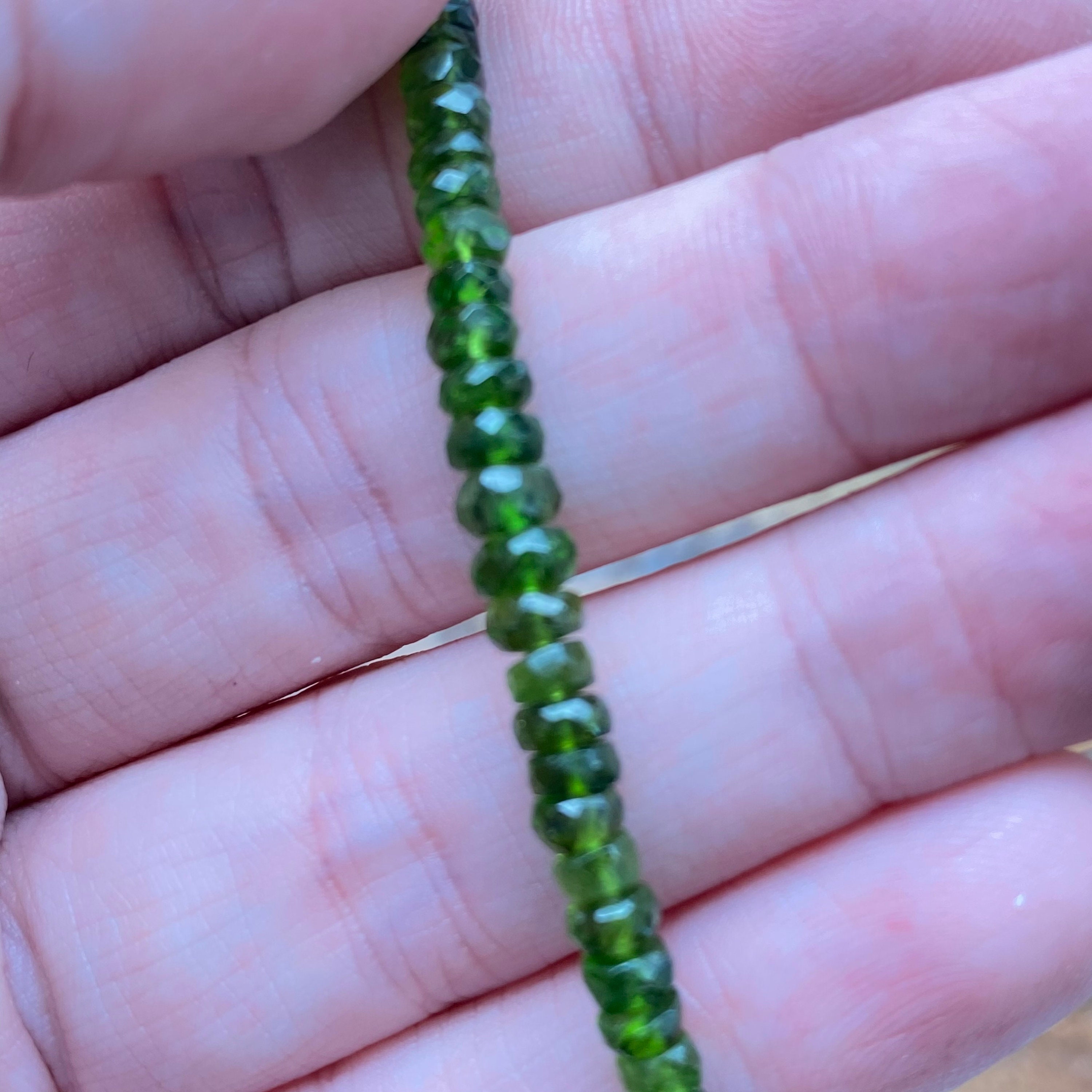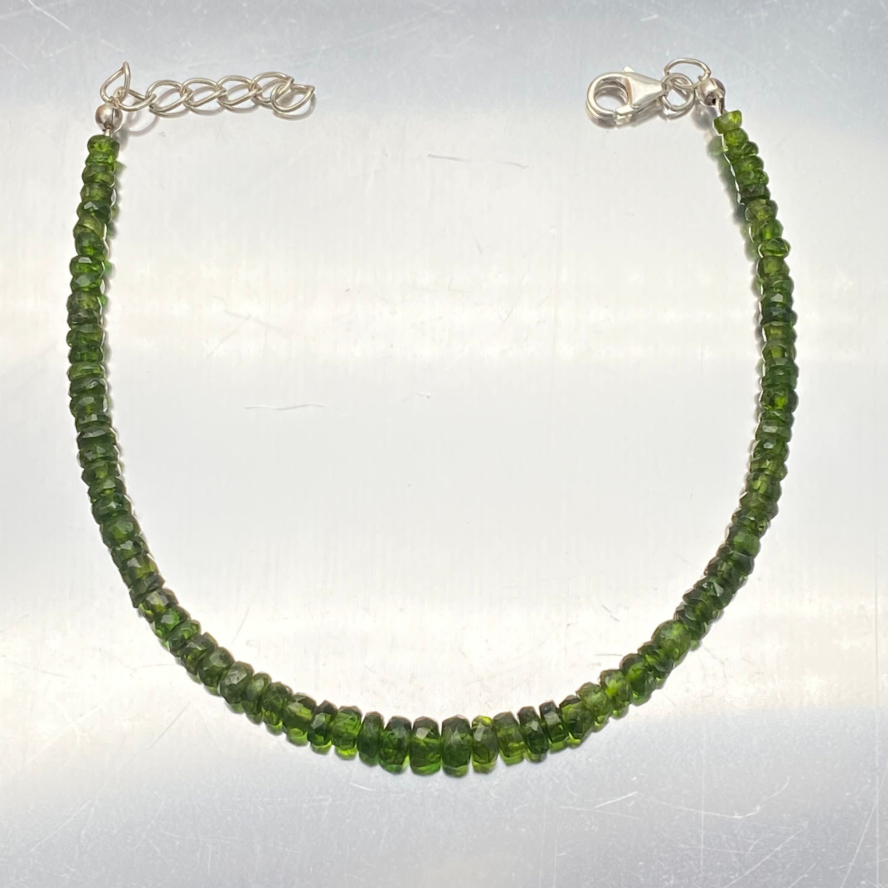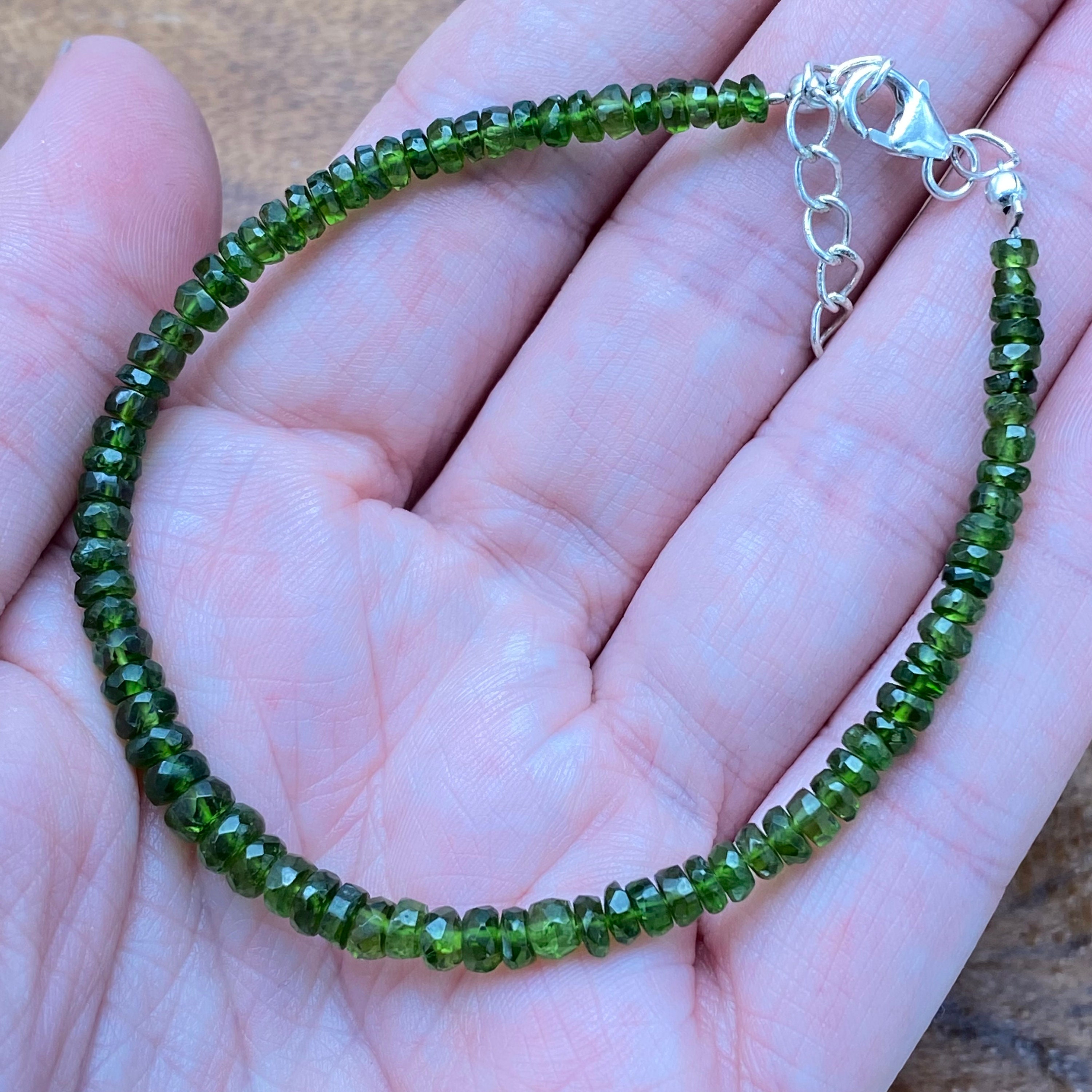 This bracelet is made of high-quality materials. The Siberian Chrome Diopside is natural and untreated and the accents and closure are made of solid 925 sterling silver.