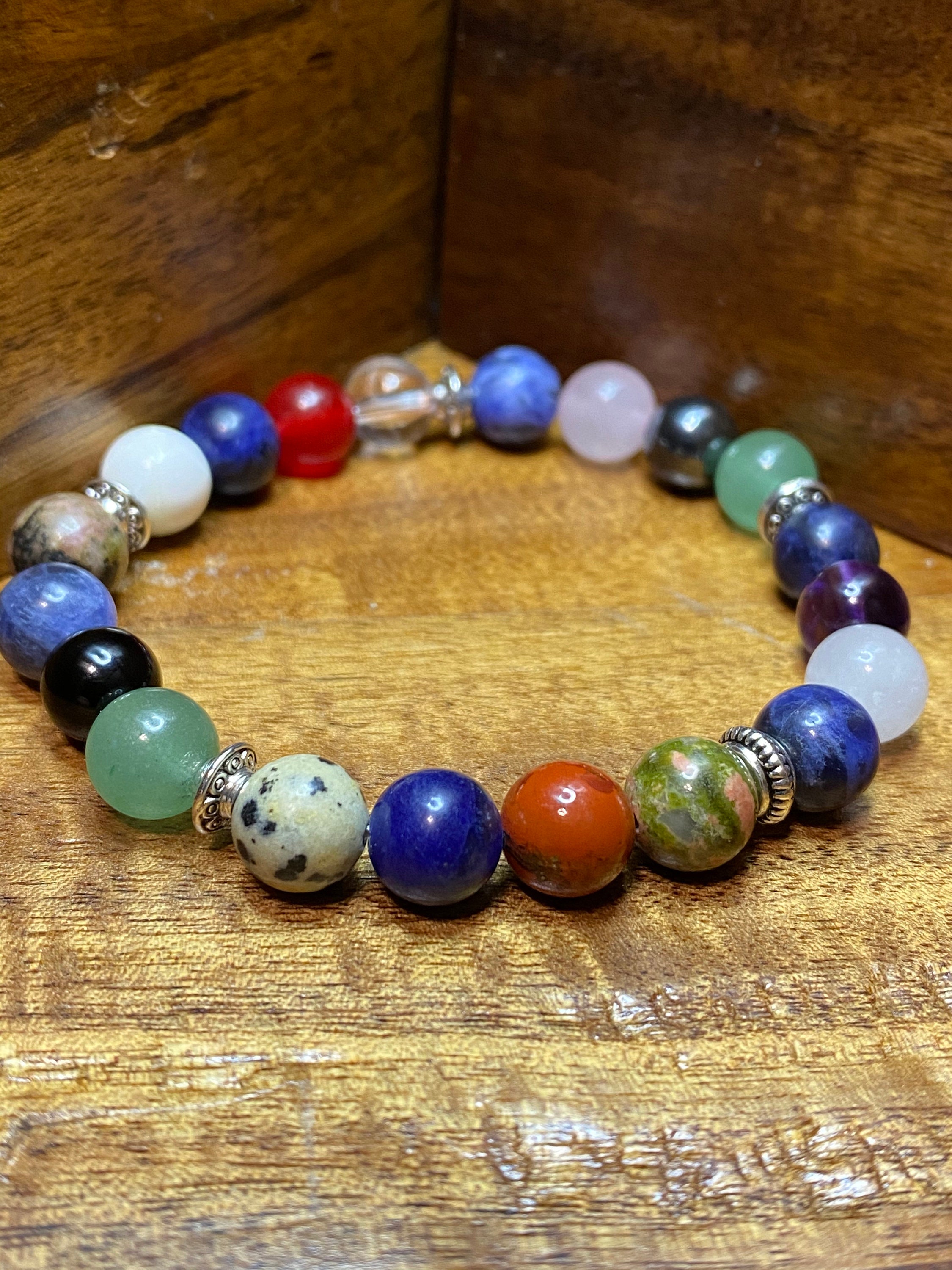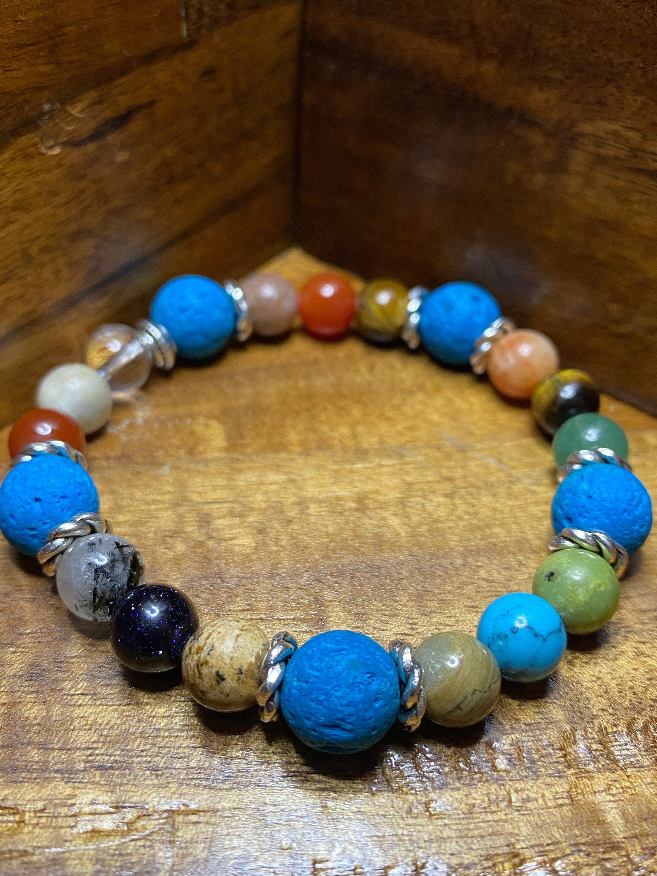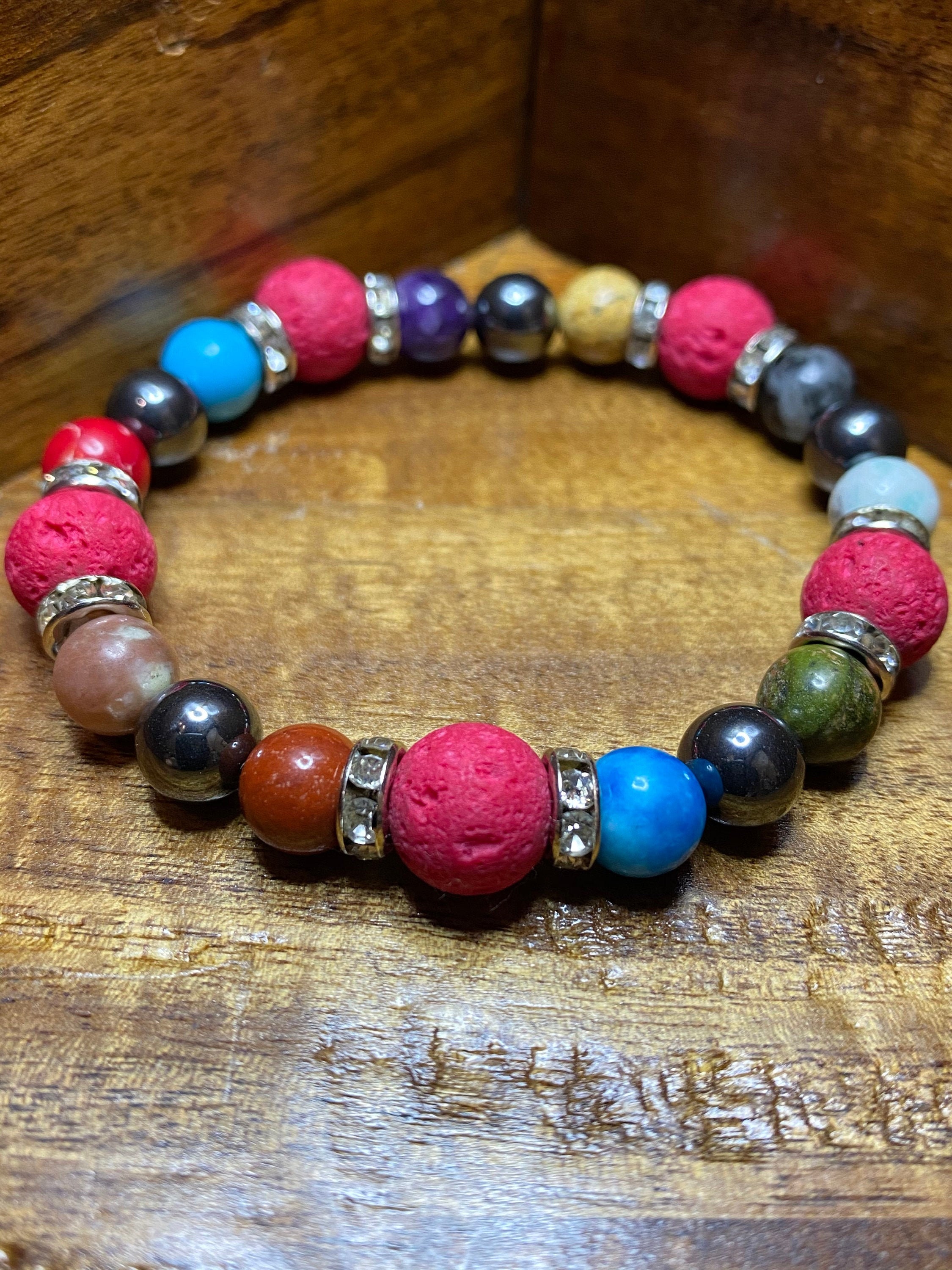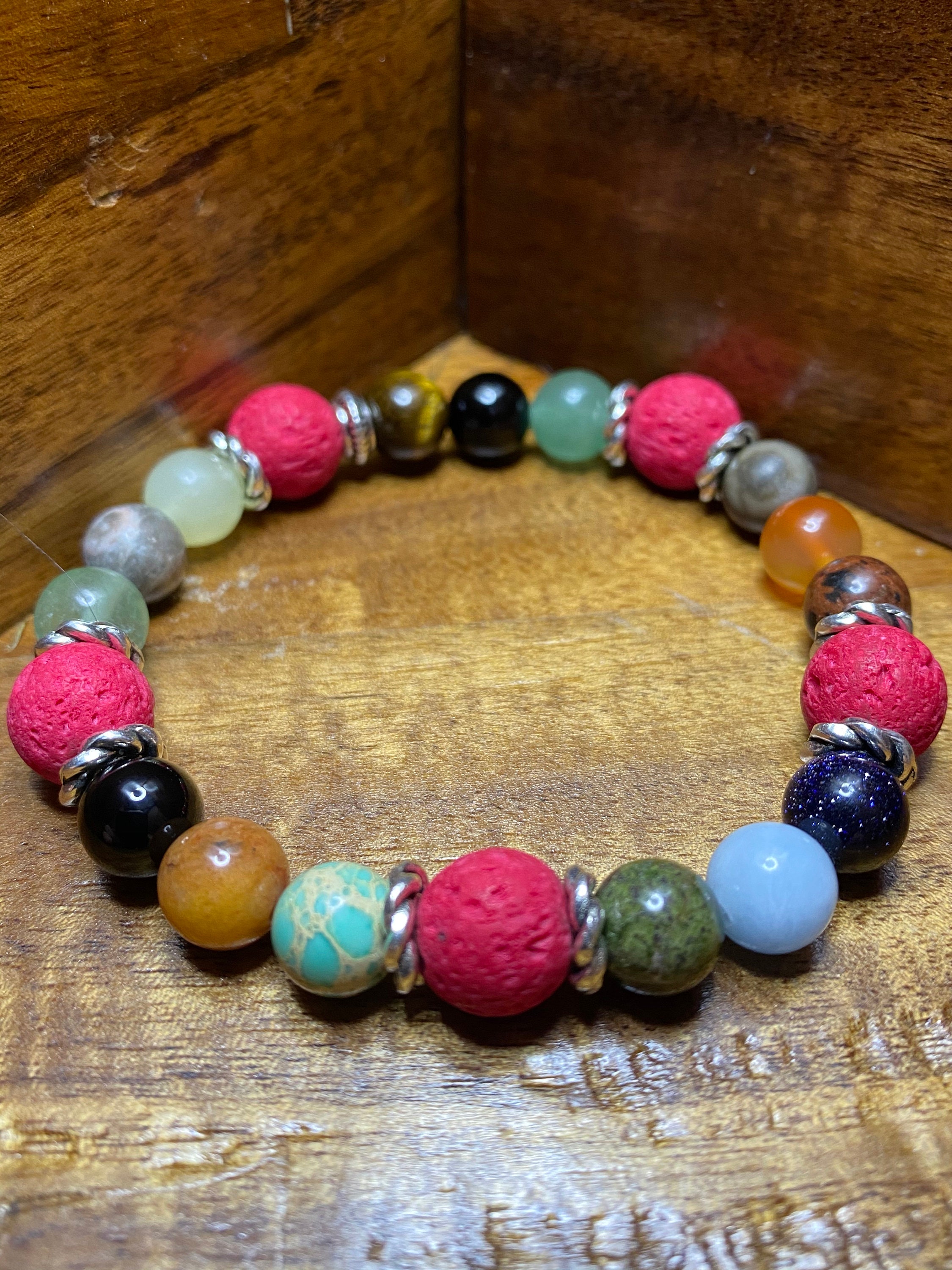 Dalmatian & Poppy Jasper, Rhodonite, and Lava Rock Bracelet w/ Dalmatian Jasper Charm