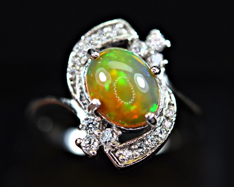 Authentic Natural Ethiopian Welo Rolling/Pinfire Flash Fire Opal & Solid 925 Sterling Silver Statement Ring