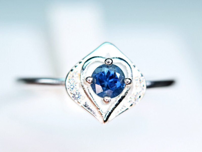 Alluring Natural Transparent Blue Sapphire & Solid 925 Sterling Silver Statement Ring
