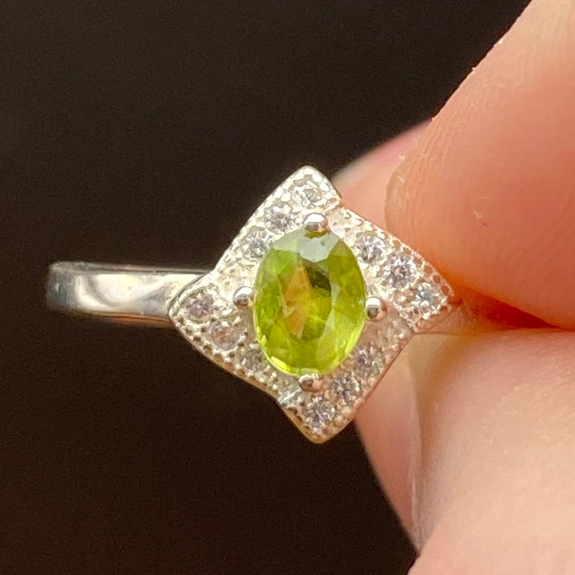 Superb Natural High Quality Luster/Fire Green Sphene & Solid 925 Sterling Silver Statement Ring