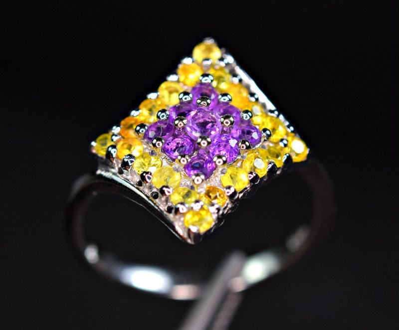 Spectacular Natural Beryllium Sapphire, Amethyst & Solid 925 Sterling Silver Statement Ring
