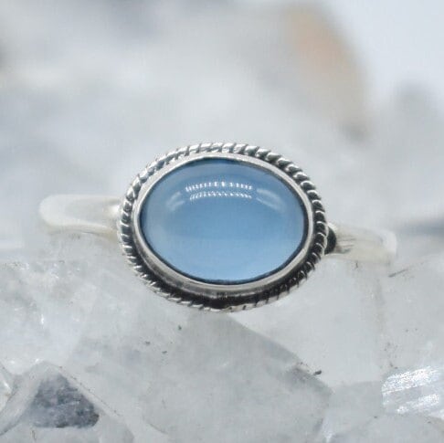 Adorable Natural Blue Chalcedony & 925 Sterling Silver Statement Ring