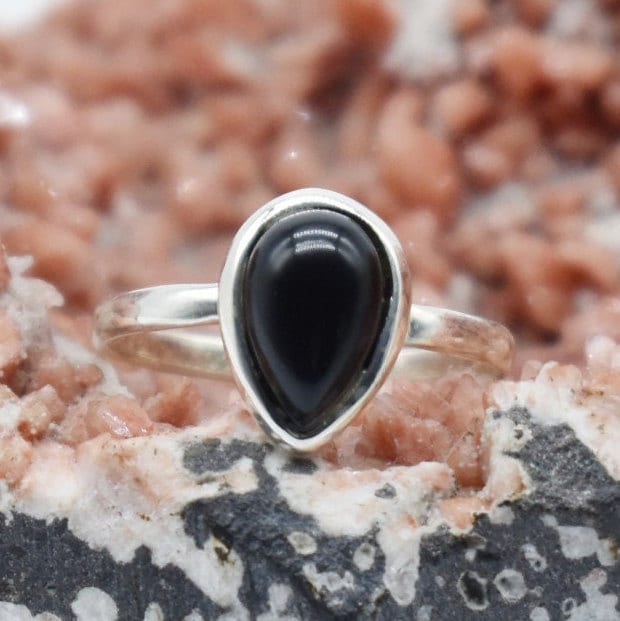 Fun Natural Teardrop Black Onyx & Solid 925 Sterling Silver Statement Ring