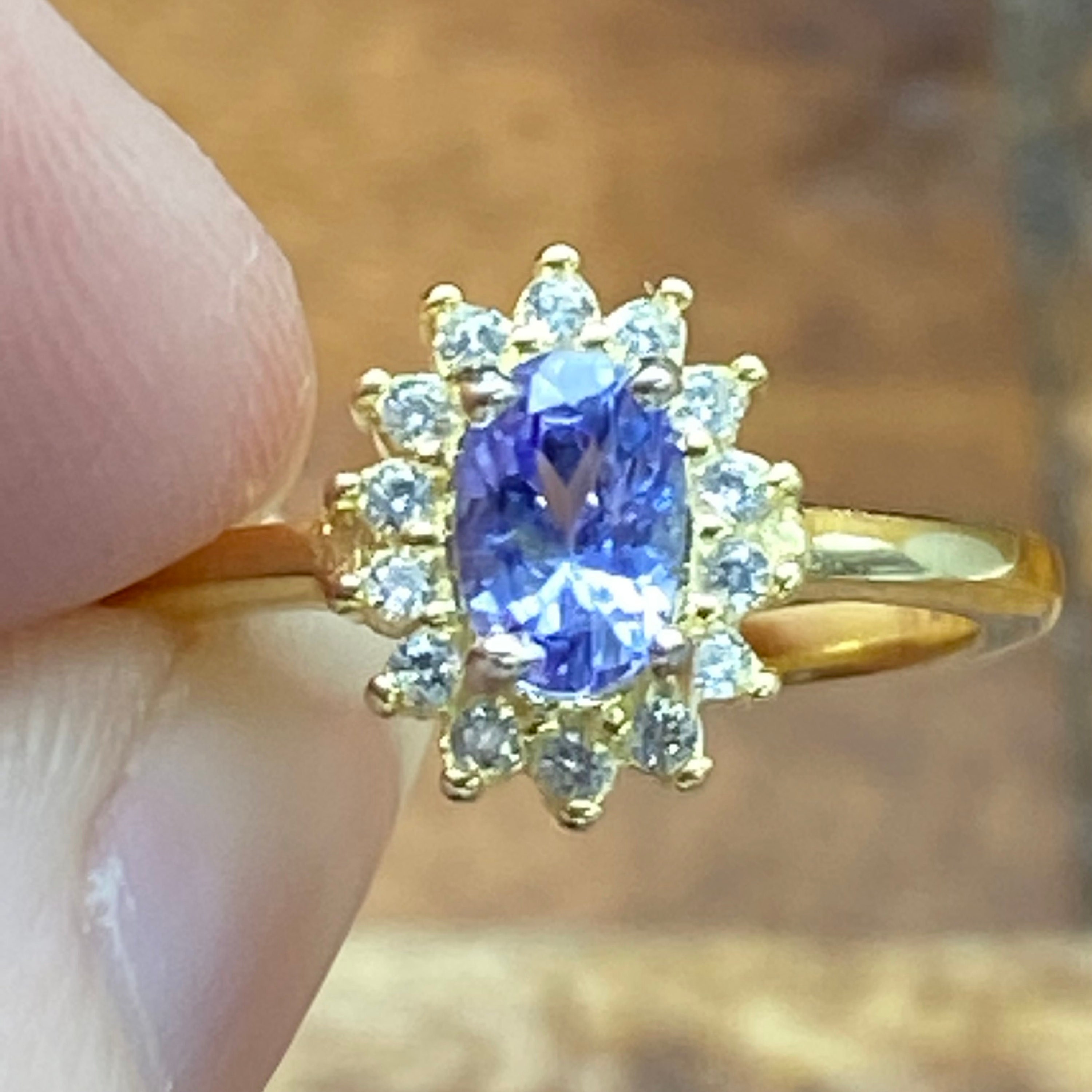Stunning Natural Tanzanite & Solid 925 Gold Covered Sterling Silver Statement Ring