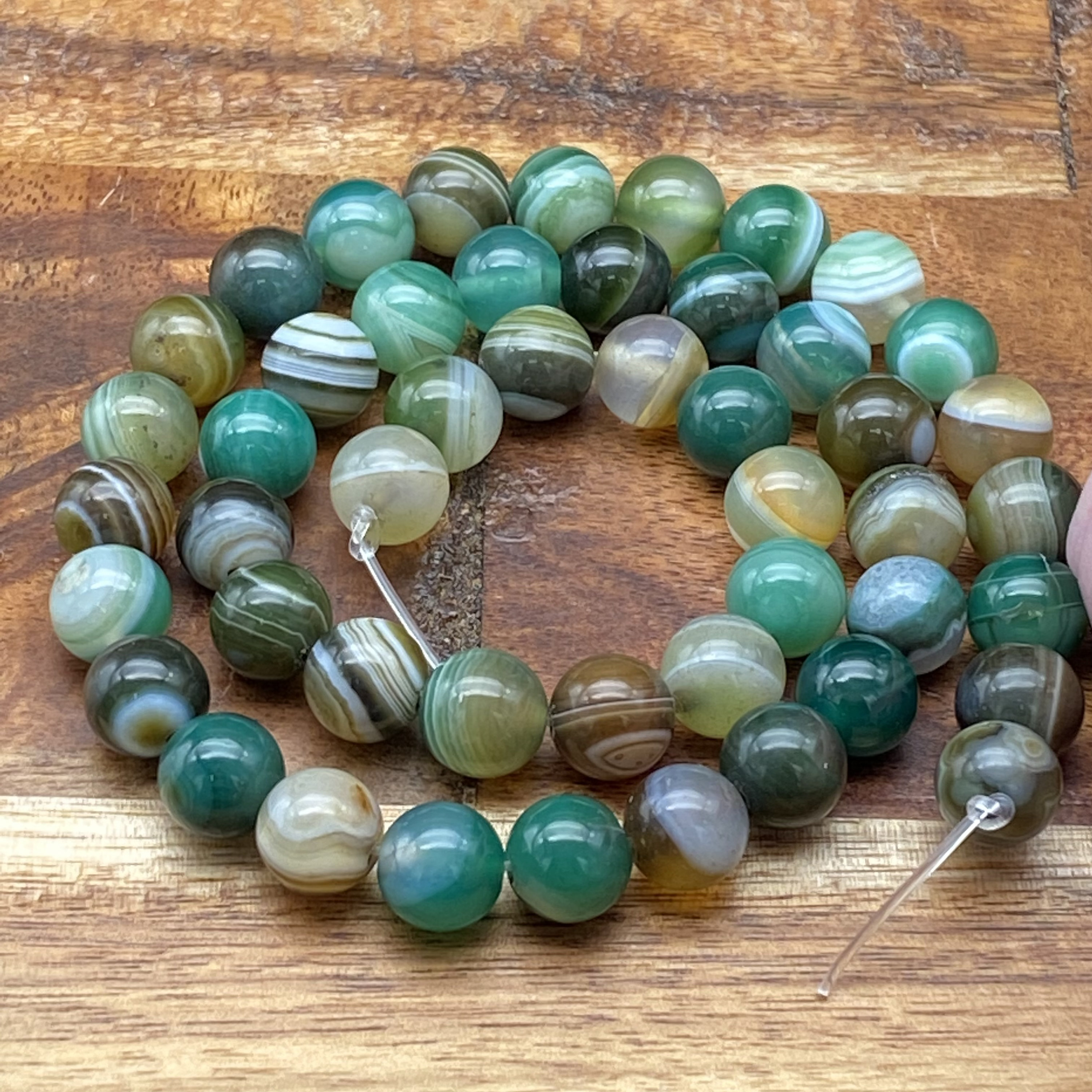 Charming Natural Mixed Colored Green Striped Agate Gemstone Beads for Jewelry/Craft Making, Round: 6mm, 8mm